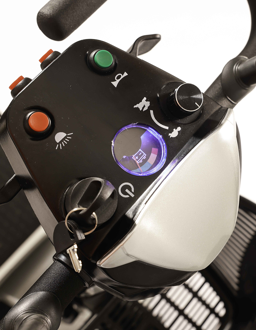 Der Volksflitzer ist ein vierrädriges Elektromobil, das mit einem benutzerfreundlichen Gashebel und einer automatischen Magnetbremse ausgestattet ist – ideal für Menschen mit Handicap. Dieser E-Scooter der neuesten Generation begeistert mit modernem Design, durchdachter Funktionalität und einer umfassenden Ausstattung. Bereits in der Standardausführung sind praktische Extras wie zwei USB-Anschlüsse, eine Handyhalterung, LED-Beleuchtung, ein Frontkorb und Blinker integriert.